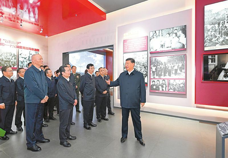 9月24日上午,中共中央总书记、国家主席、中央军委主席习近平在乌鲁木齐文化中心展览馆参观新疆维吾尔自治区成立70周年主题成就展。 新华社记者 谢环驰 摄